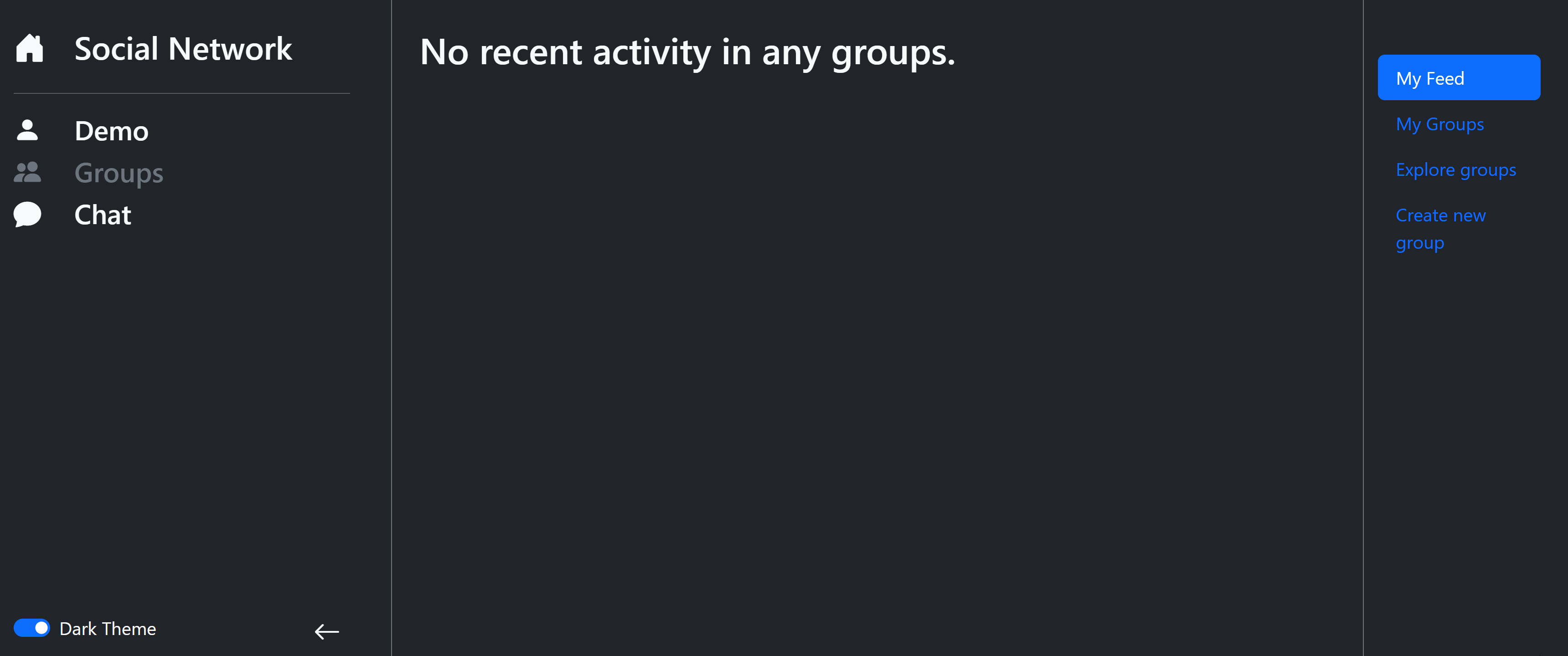 Een gebruiker kan een groep aanmaken en zich aansluiten bij een bestaande groep. Een groep kan privé gemaakt worden zodat je zaken kan uittesten zonder dat de code van andere studenten hier invloed op heeft. We beginnen met een overzicht te bouwen van alle groepen en gaan vervolgens verder met het aanmaken van een nieuwe groep en tenslotte met het openen van de detailpagina.